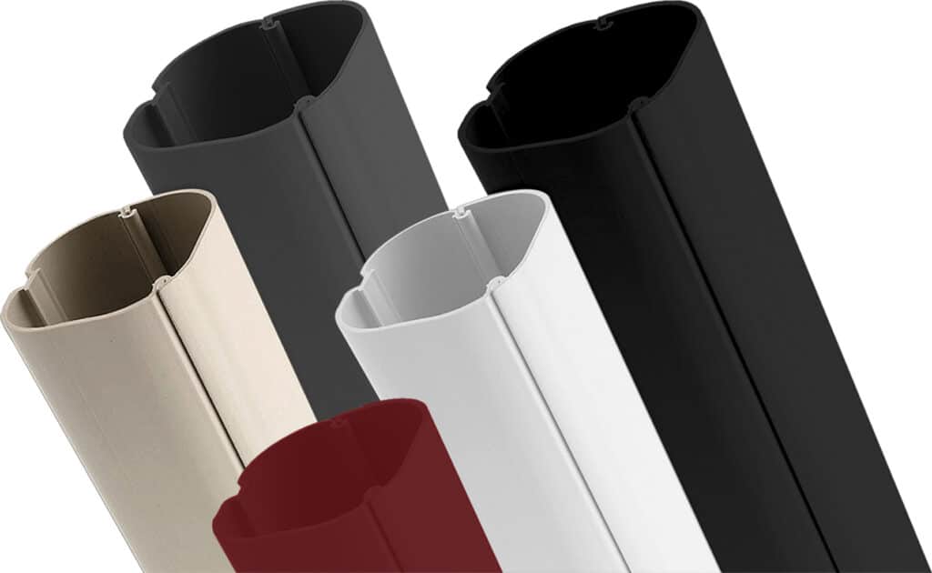 Inoac CleanDuct is beschikbaar in 2 groottes naargelang het aantal te plaatsen koelleidingen en bekabeling. Het materiaal bestaat voor beide uit stevig, geëxtrudeerd en UV-gestabiliseerd pvc. Hierdoor blijven de goten vormvast, zelfs bij langdurige blootstelling aan zonlicht en temperatuurschommelingen. Dit garandeert een duurzame en professionele afwerking, zowel binnen als buiten. De 4 basiskleuren zijn RAL9003, RAL1013, zwart en nu ook RAL7016 (antraciet).